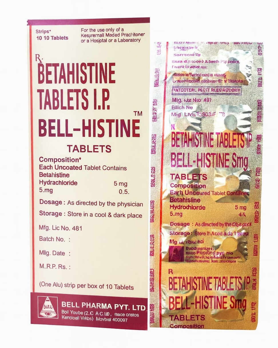 Bell-Histine (Betahistine Hydrochloride 8 mg / 16 mg) is an effective antivertigo tablet formulated to relieve symptoms of MΓ©niΓ¨reβs disease, including vertigo, dizziness, tinnitus, nausea, and balance disorders.