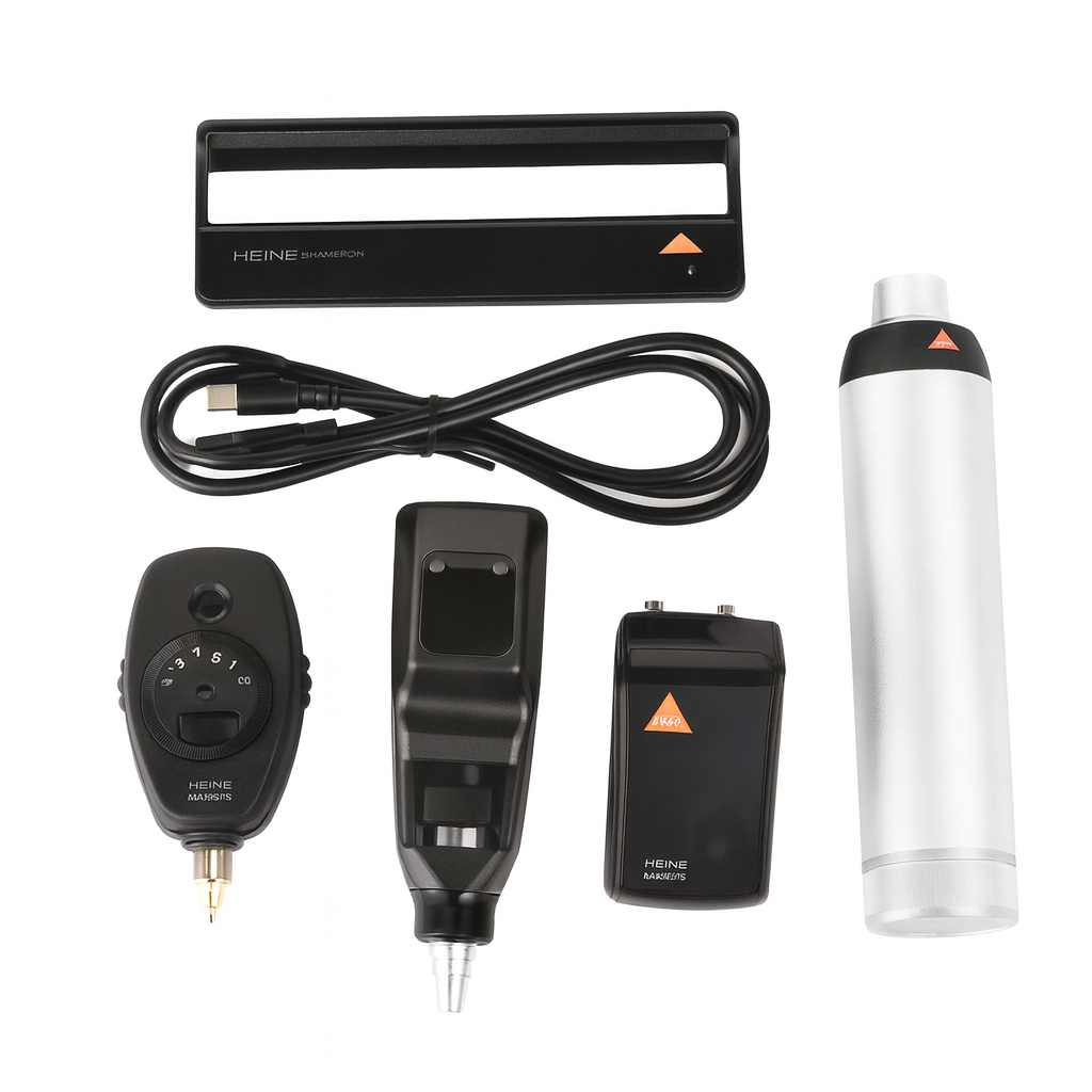 Inspired by the legendary Heine Germany design and standards, this combo set offers crystal-clear optics, long-lasting LED illumination, ergonomic handling, and exceptional durability—making it a preferred choice for medical professionals and healthcare institutions worldwide.